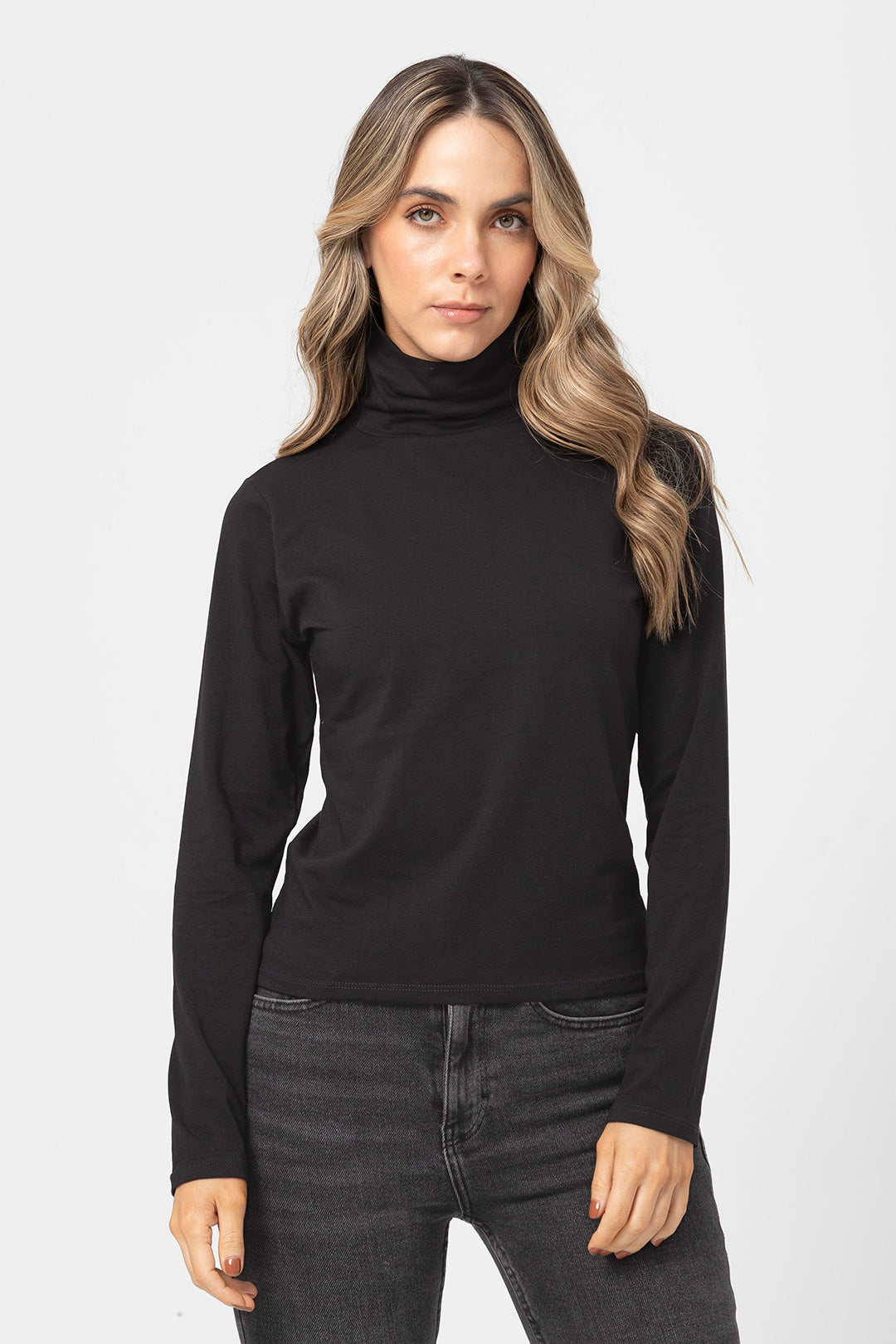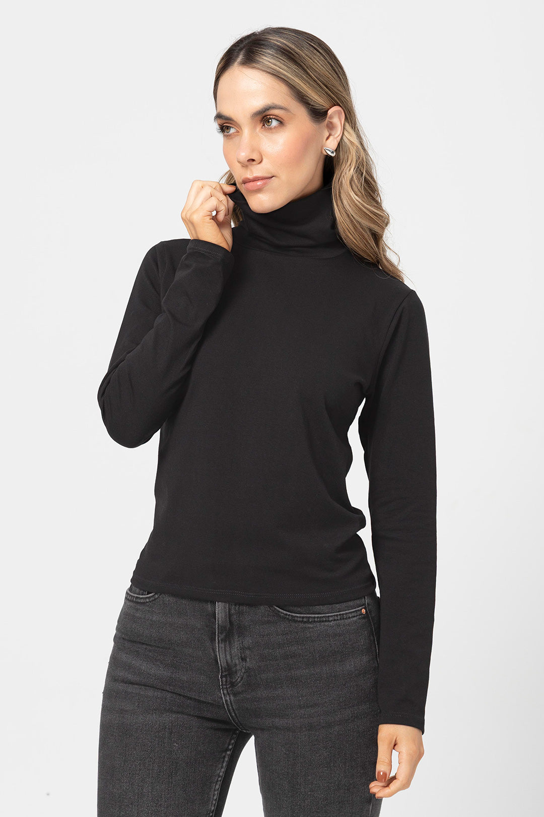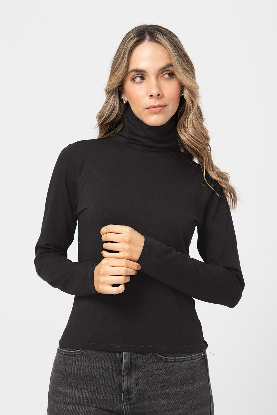 Este camibuzo negro para mujer con cuello tortuga es el básico que necesitas para tu clóset. Hecho con una tela delgada y suave, es perfecto para esos días en los que buscas comodidad y estilo sin complicarte. Su silueta ajustada resalta tu figura, dándole un toque más elegante y femenino. Además, es superversátil, lo puedes usar tanto para un look casual de día como para salir en la noche.